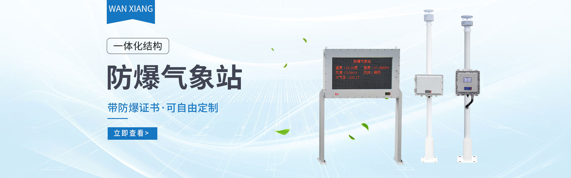山東萬(wàn)象環(huán)境科技有限公司官網(wǎng)主要產(chǎn)品有防爆氣象站,校園氣象站,農(nóng)業(yè)氣象站,負(fù)氧離子監(jiān)測(cè)站,超聲波氣象站,歡迎咨詢(xún)15666889815!